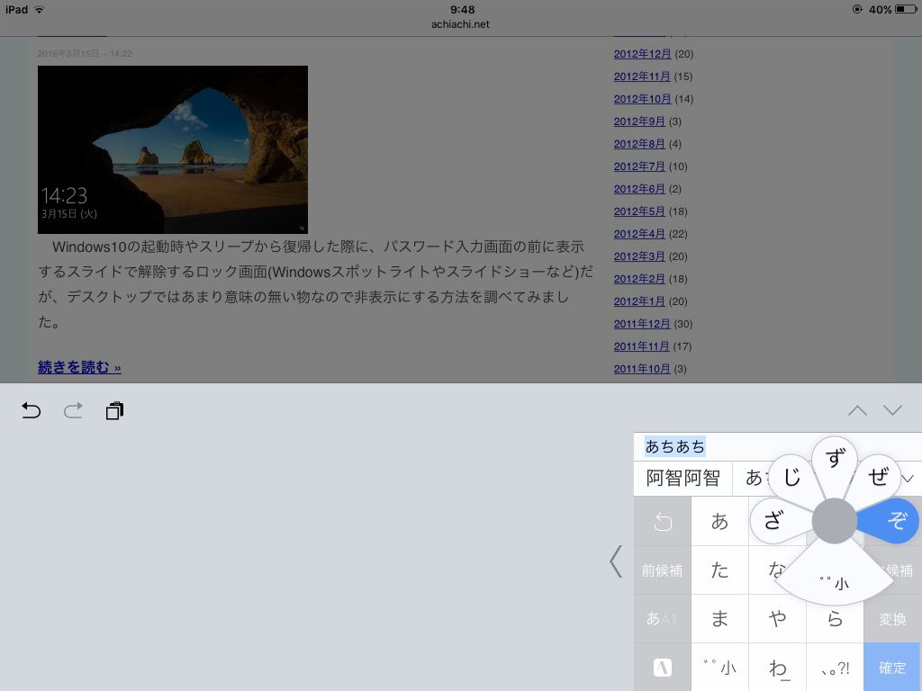 iOS標準のキーボードは矢印キーが無いなど使い勝手がイマイチ、無料のキーボードアプリを試したけどこちらもイマイチで、有料アプリのATOK for iOSしかないけど1600円は高いなーと、思っていたら2016/03/31までキャンペーン価格で40%引きの960円(税込)になってたので購入してみました。